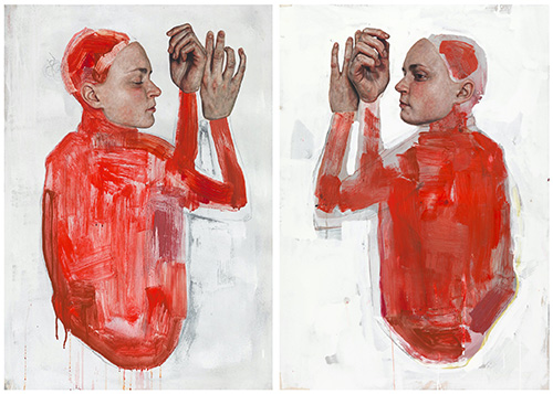 Сосредоточившись почти исключительно на ню-портретах и исследованиях человеческой плоти, Эмма Хопкинс обратилась к портретной живописи после получения степени по специальности «Макияж и протезирование для перформанса» Лондонского университета искусств, где она обучалась дизайну и изготовлению протезов части тела для театра, кино и телевидения. Она быстро становится одной из влиятельных женщин-художников этого века. Родившийся в Брайтоне в 1989 году, Хопкинс увлечена темами анатомии, психологии и смертности, отмечая в качестве влияния Эгона Шиле, Фриду Кало и Пола Маккарти. Она старается «рисовать людей изнутри», пытаясь раскрыть взаимоотношения с нашим телом, разумом и эмоциями.
