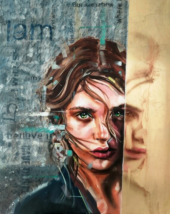В настоящее время я пишу свои портреты маслом alla prima, используя текстурную пасту для моделирования, чтобы сделать фон моих необработанных, «городских» текстурных стен. Другим ключевым аспектом моей техники является использование сусального золота, иногда перекрашенного, в качестве дополнительного контраста с необработанной текстурой.