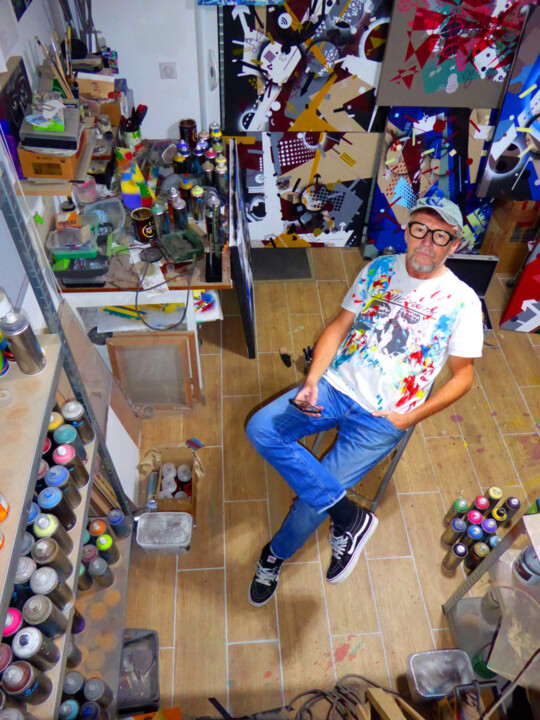 Сначала я брал уроки в EMAP Villa Thiole в Ницце, а затем во Дворце Конгрессов в Ницце. Я быстро начал создавать произведения, которые на тот момент, в конце 80-х, были близки духу свободной фигурации. Затем я взял псевдоним Раймонд Икс, чтобы совершенно анонимно создавать картины на бумаге, которые затем наклеивал на городские стены. В поисках большей свободы в своей практике, почти не осознавая этого, моя работа постепенно приняла более абстрактное направление, даже если моя первая любовь всегда рядом…