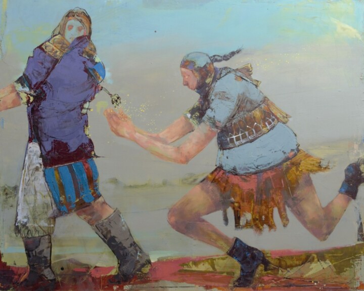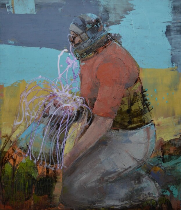 Время, необходимое для выполнения работы, очень вариативно. Моя творческая техника делится на очень спонтанные жесты, почти танцующие на холсте, и замедление для более точного времени высыхания и деталей.