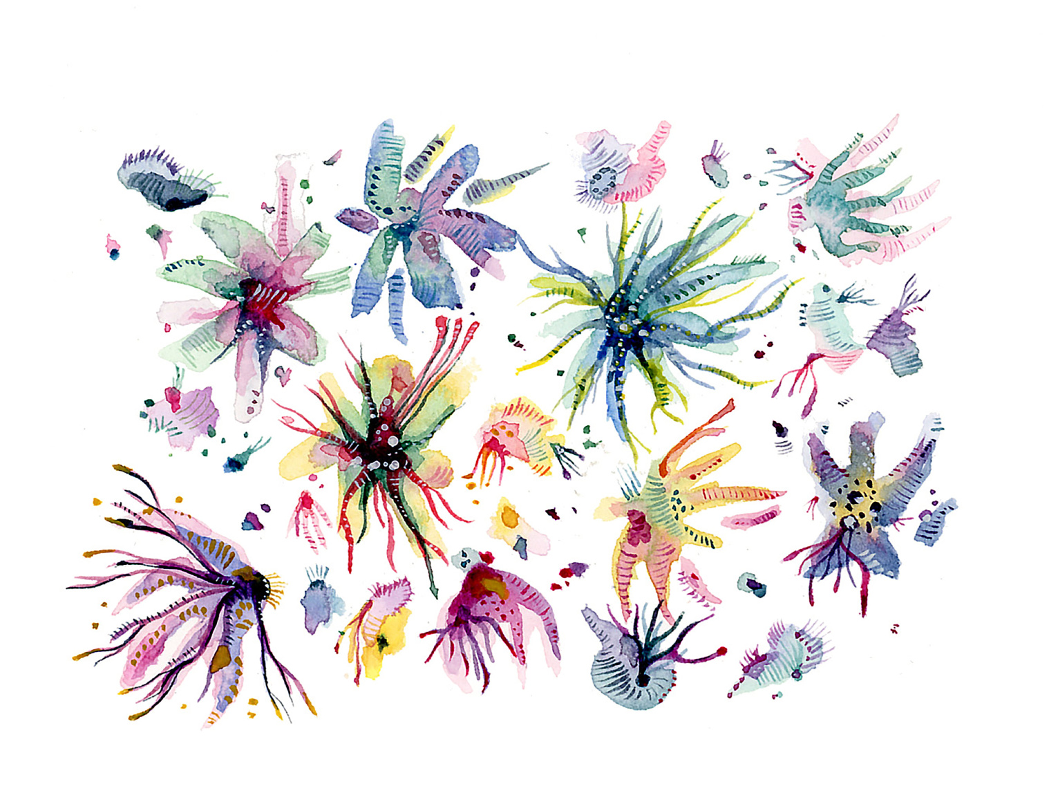 Да, меня вдохновляют многие художники. Известные художники, такие как Кандинский, Хильма аф Клинт, Миро и Соня Делоне. Современные иллюстраторы, такие как Брехт Эвенс и Джин Маллард, чья современная акварель мне очень нравится. Художник Симон Бюре, чья творческая вселенная наполнена красотой, будь то музыка или живопись. А также поэзия Бодлера и даже некоторые музыкальные коллективы, которых слишком много, чтобы перечислить всех.