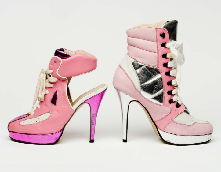 Сид Джуни (1968-, сапожник) — Баскетбол в Сохо (осень-зима 1993) Тандемный баскетбол (весна-лето 1993) Франция Кожа, шкура, хлопок, алькантара, перфорированная кожа, вставки и металлические кожаные аппликации © Декоративное искусство / Жан Толанс