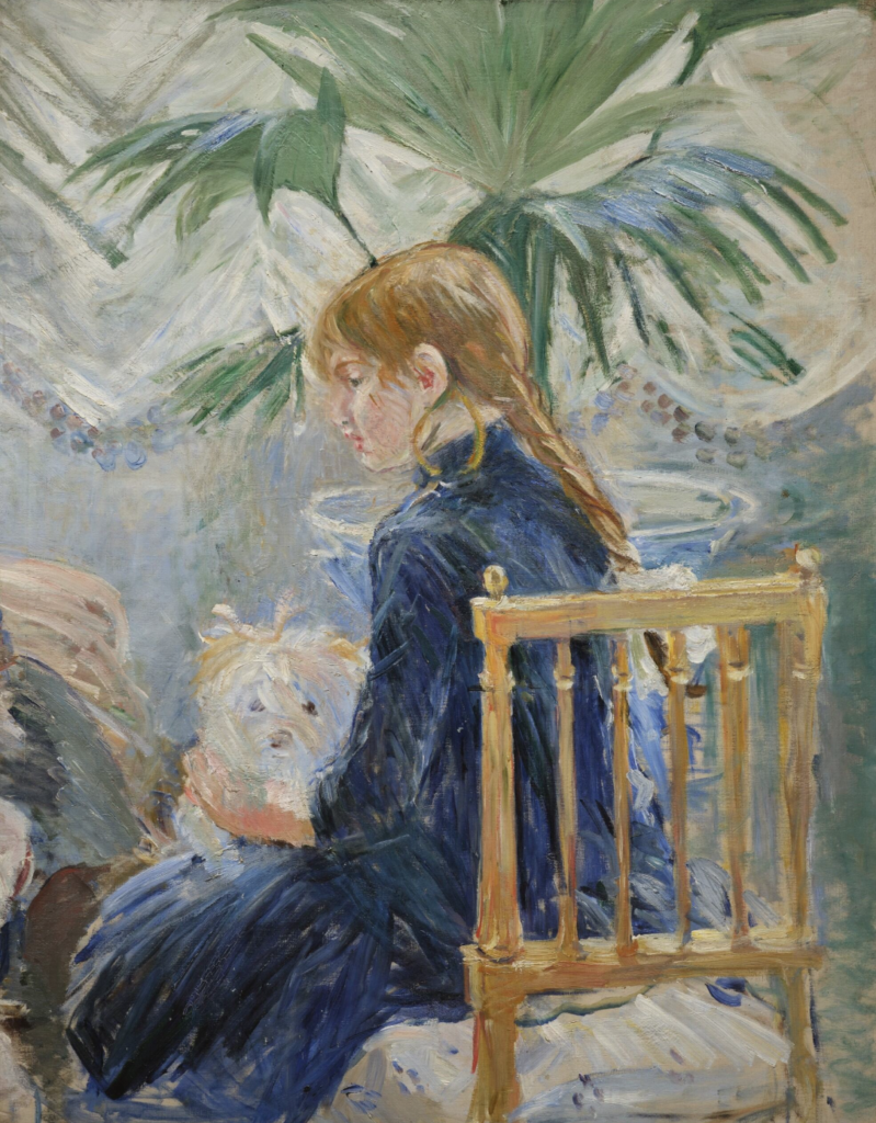 Салон сначала в доме ее родителей, а затем в ее резиденции, когда она стала женой Эжена Мане, брата более известного Эдуара, всегда также служил ателье. Сцены современной и повседневной жизни являются манифестом импрессионизма, но с Берта Моризо семейная близость обретает небывалое дыхание. Выставлен впервые Портрет мадам Бурсье (1867), двоюродного брата Берты, также является одним из редких сохранившихся свидетельств юношеской деятельности художницы. Также на выставке представлен портрет, сделанный ее сестрой Эдмой в 1865 году, на котором она изображает ее с кистью в руке, что свидетельствует о ее ранних амбициях. И снова Сирень в Моркуре, написанная после выставки 1874 года, фокусируется на знакомой сцене и представляет характерные черты ранних импрессионистских работ Моризо, в то время как Молодая женщина в сером лежит (1878) интерпретирует утонченное очарование парижанки, еще одну дорогую ей тему.